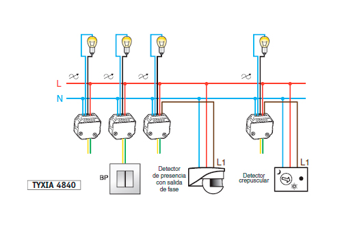 • 1 entrada fase filar en detector de movimientocrepuscular,