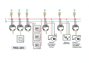 • 1 entrada de fase filar sobre detector de presencia crepuscular con contacto de salida de fase alimentada
